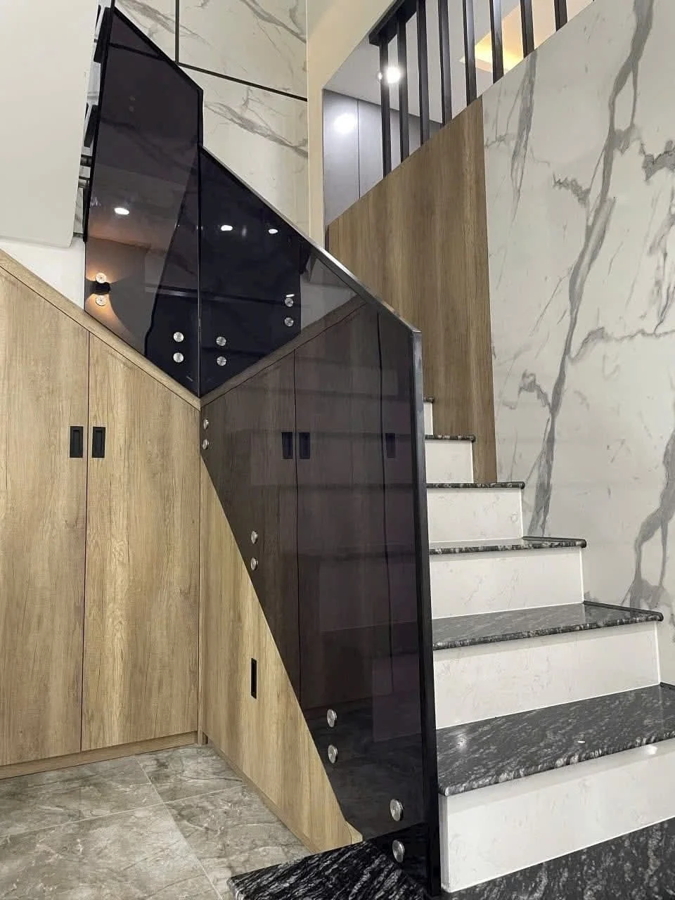 Kính được sử dụng là loại kính Việt Nhật dày 8mm, đảm bảo an toàn và độ bền cao. Kính cường lực có khả năng chịu lực tốt và khi vỡ sẽ tạo thành các mảnh nhỏ không sắc cạnh, giúp giảm nguy cơ gây thương tích.